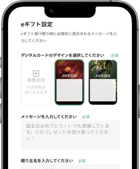 eギフトお届け先の住所を知らない方にも、LINEやメールなどでギフトを贈ることができます。eギフトとはご利用方法対象製品ギフトラッピングよくあるご質問eギフトとはお届け先の住所を知らない方にも、LINEやメールなどで受け取りURLを送ることで気軽にギフトを贈ることができるサービスです。住所を知らなくても贈れる今すぐに贈れるメッセージカードを一緒に贈れる無料ギフトラッピングを選べるご利用方法eギフトの贈り方eギフトの受け取り方eギフトの贈り方贈りたい製品を選ぶ製品ページで「LINEやメールでeギフトを贈る」が選べる製品がeギフトに対応しています。メッセージカードやラッピングを選択メッセージやギフトラッピングなどの必要項目を入力し、購入してください。購入完了で、eギフトのURLが発行されます。URLを送りたい相手に連絡LINEなどのSNSやメールでURLを伝えることで、eギフトを贈ることができます。eギフトの受け取り方eギフトが届くLINEやメールに届いたeギフトのURLにアクセスし、「eギフトを受け取る」をタップしてお届け先情報の入力に進みます。お届け先情報を入力するお届け先情報を入力してください。入力した情報は贈り主には連絡されません。ギフトを受け取る入力したお届け先に、eギフト商品が配送されます。eギフト対象製品ヘアケア製品 ボディケア製品 アロマ製品 もっと見るギフトラッピング ラッピングサービス製品ご購入時に、無料のラッピングサービスをご用意しています。※写真はイメージです。eギフトの場合、紙のメッセージカードは付きません。よくある質問 plus minus すべての製品はeギフトの対象ですか? plus minus 「LINEやメールでeギフトを贈る」のボタンがある製品のみとなります。eギフトで選択可能な製品の一覧はこちらからご覧ください。 eギフトのURLはどのようにして送られますか? plus minus ご注文完了画面に表示されます。また、注文完了メールにてeギフトの受け取りURLをお送りいたします。「info@anygift.jp」よりお送りいたしますので、メールを受信できるようドメイン指定受信設定をお願いいたします。届かない場合、迷惑メールフォルダに入っている可能性がございますのでご確認をお願いいたします。 URLは再発行できますか? plus minus eギフトURLが記載されたメールの再送はできませんので、メールの削除にご注意ください。メールが届かなかった場合などはinfo@anygift.jpまでお問い合わせください。 お届け先情報入力の有効期限はありますか? plus minus ご注文日から7日後の23時59分に、eギフトの有効期限が切れます。それまでに、受け取る方へURLを送付するだけでなく、受け取る方がそのURLから住所を入力いただくようお願いいたします。有効期限が過ぎた場合はご注文が自動キャンセルとなりますのでご注意ください。 お届け希望日の入力はできますか? plus minus ギフトを受け取った方がお届け日時の指定をすることが可能です。 どんな決済手段が使えますか? plus minus クレジットカード(VISA, Mastercard, JCB, American Express, Diners Club)をご利用いただけます。 送料はかかりますか? plus minus 送料は全国一律495円(税込)となっております。8,800円(税込)以上ご購入の場合送料は無料となります。 刻印無料サービスを利用することはできますか? plus minus eギフトのご注文は、無料刻印サービスの対象外となります。刻印をご希望の場合は通常購入でご注文ください。 クーポンコード、キャンペーンコードは使用できますか? plus minus eギフトのご注文では、クーポンコード、キャンペーンコードはご利用いただけません。サイト内で行っているキャンペーンは適応外となります。送料はeギフトの条件に準じます。予めご了承ください。 電話でeギフトオーダーはできますか? plus minus 電話でのオーダーは承っておりません。 領収書は発行されますか? plus minus 各クレジットカード会社の利用明細書が領収書となります。AnyReach株式会社発行の領収書を希望される場合は、info@anygift.jpまでお問い合わせください。※ 領収書は出荷後、メールにてお送りいたします。 ※ 金額は消費税・手数料・送料込みとなっております。 ※ 電子的に発行しておりますため、収入印紙の貼り付けはいたしておりません。 ※ 領収書の再発行はいたしておりません。 eギフトサービスAnyGift に関するお問い合わせ先 plus minus アヴェダ オンラインお問い合わせ窓口ではなく、本サービス運営元の「AnyGift」までお問い合わせください。お問い合わせ先:info@anygift.jp